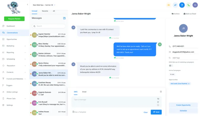 Communicate with your customers and prospects via email, phone, SMS, Facebook Messenger, Google Business Profile Messaging and Instagram DM all from inside your dashboard. Pick up the conversation seamlessly right inside the contact record with one centralized inbox. This brings all forms of communication into one spot.