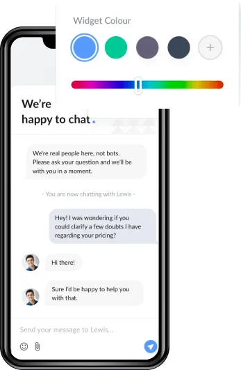 Add a personal touch to your chat window by customizing chat icons, colors, and the greeting. Let visitors know who they'll be chatting with. Add names, photos, or even a pic of your business mascot.